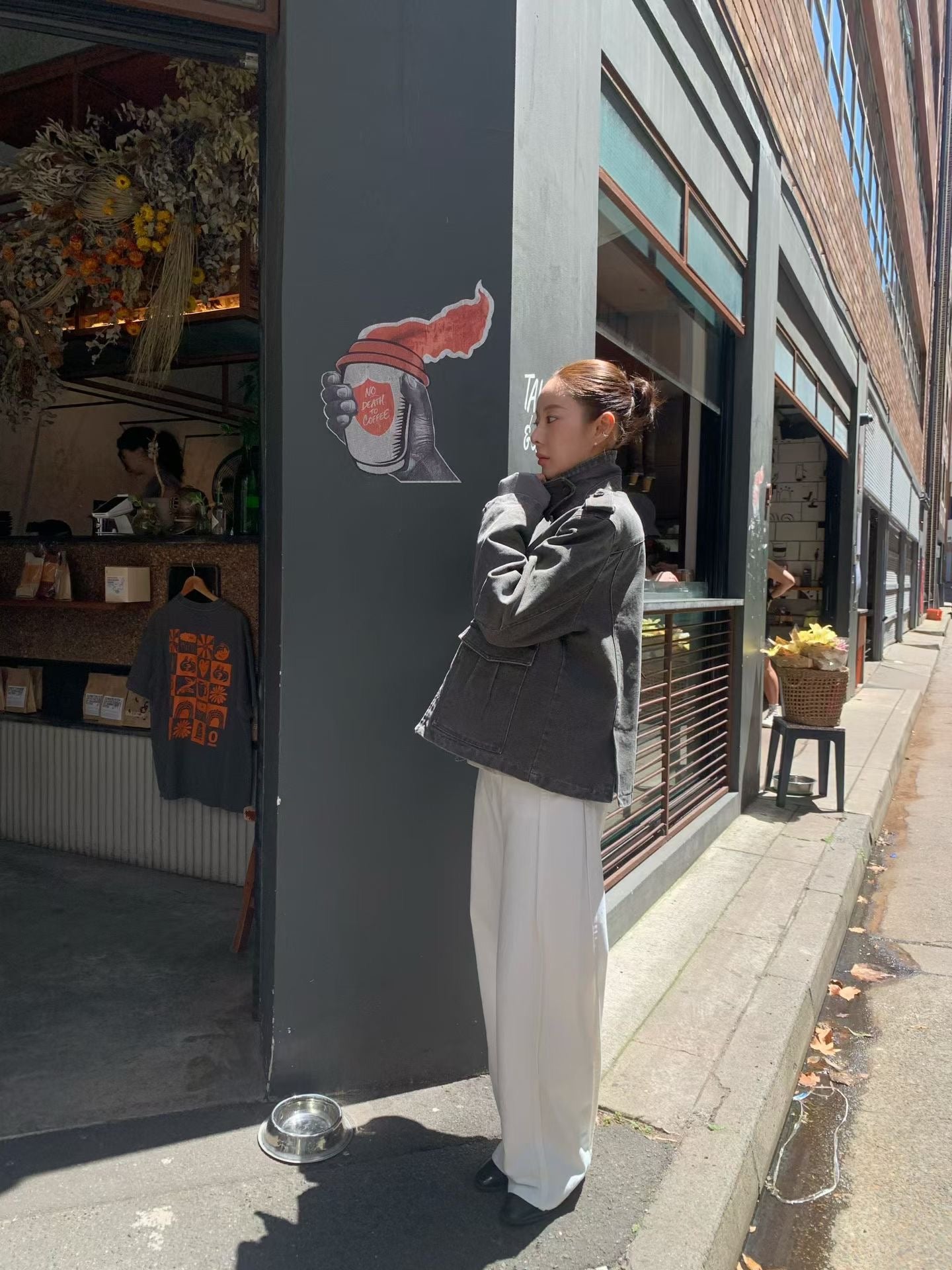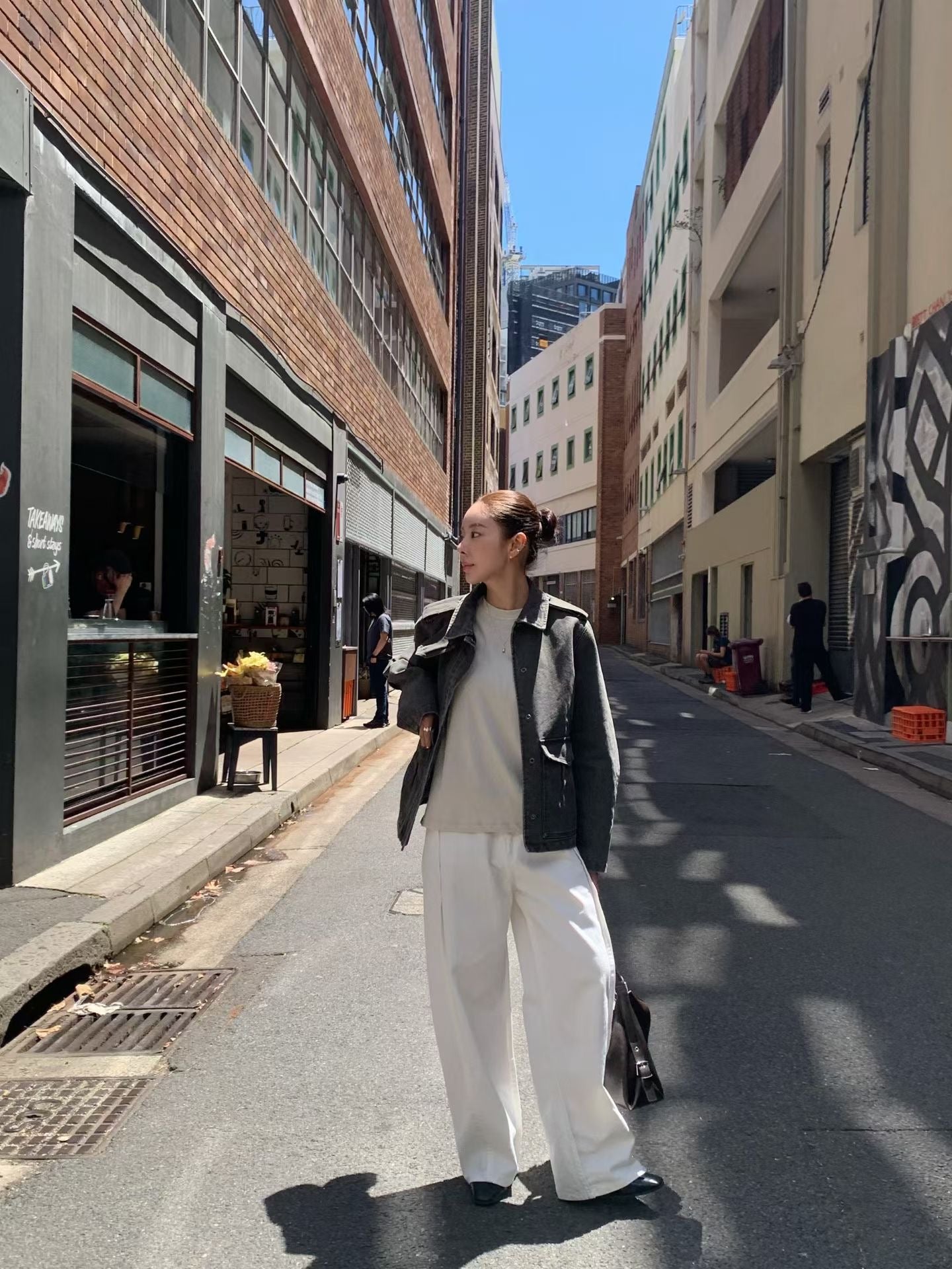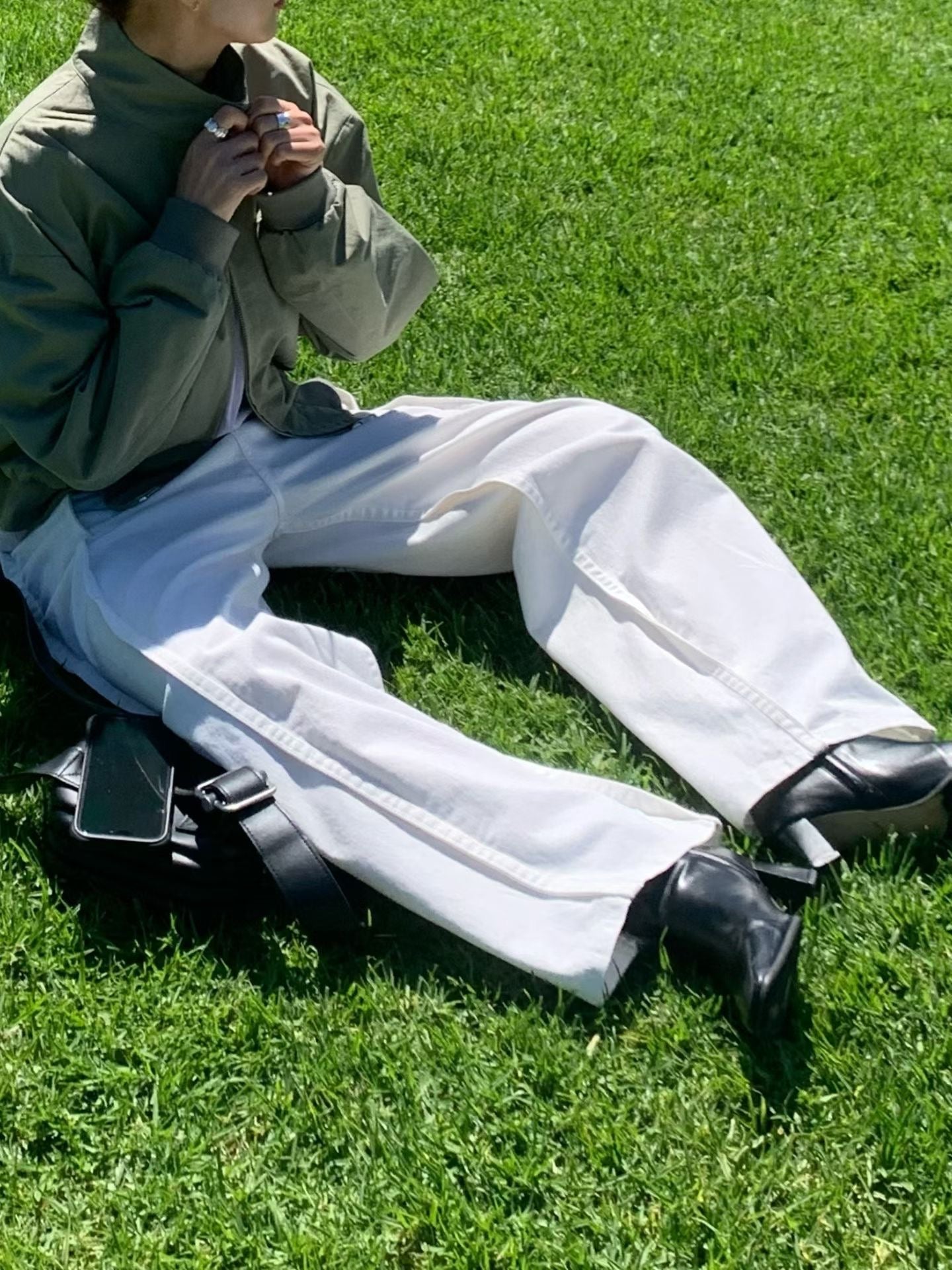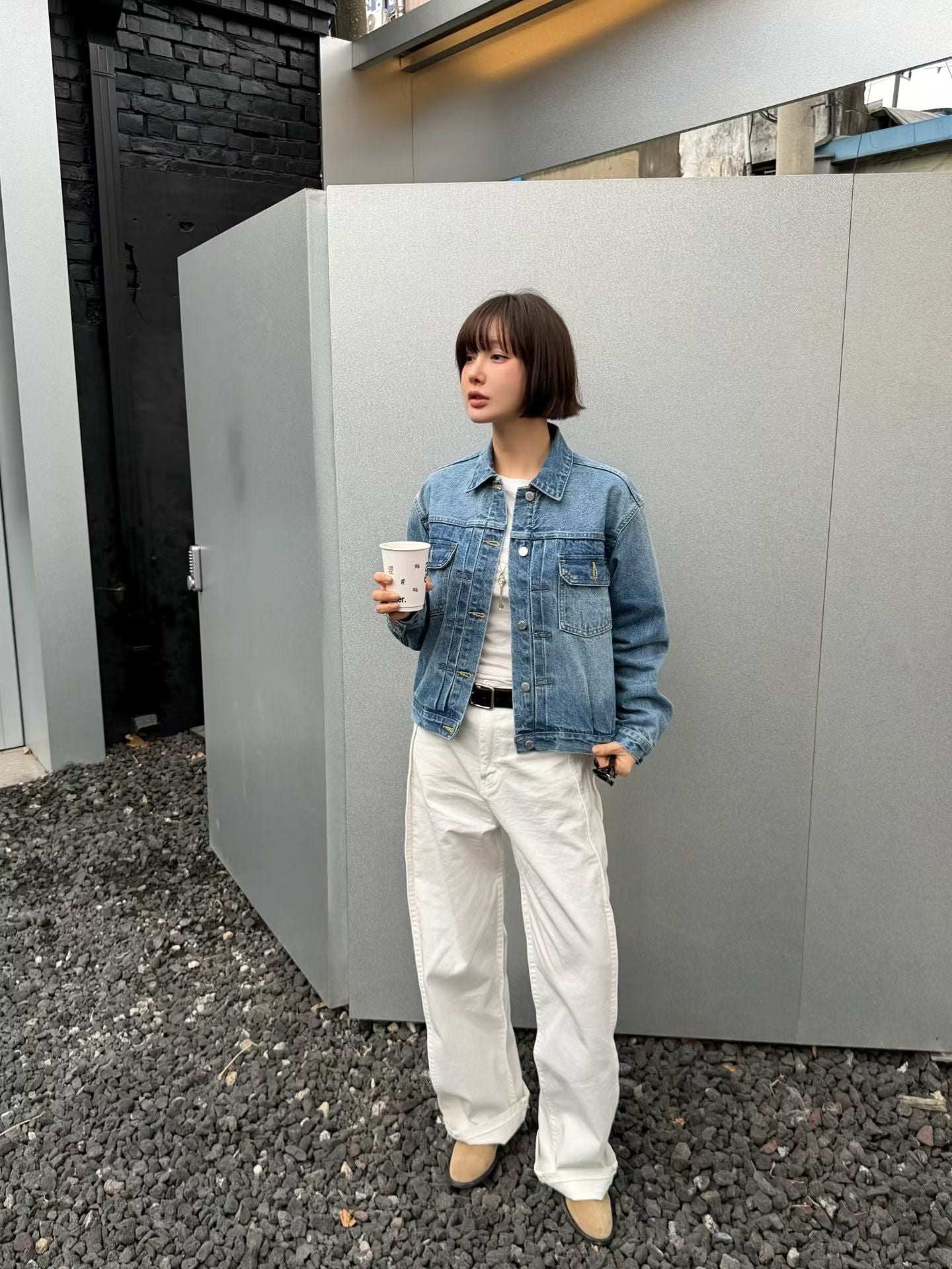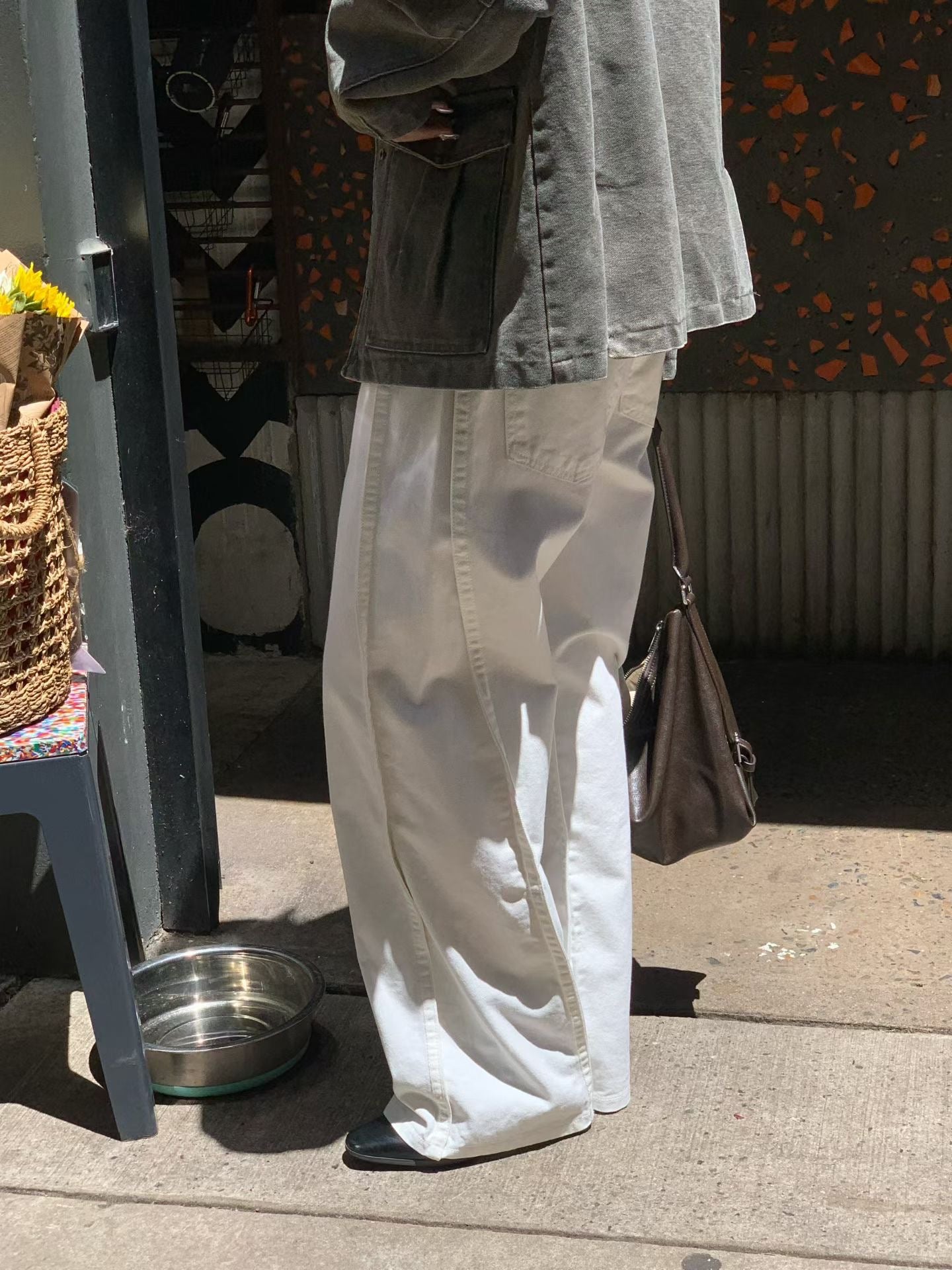 立體剪裁縫片闊腿牛仔褲🤍